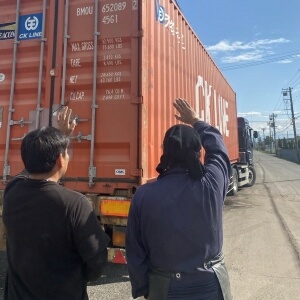 一本ずつコンテナに手作業で積み込み(約1000〜2000本)